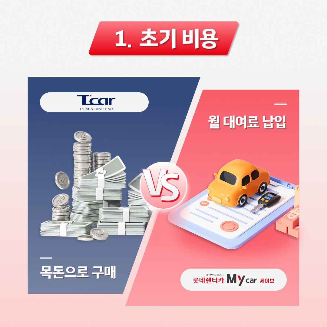 오늘은 T car(중고차 구매)와 마이카 세이브(중고차 장기렌트)에 대해 비교해 보았는데요~