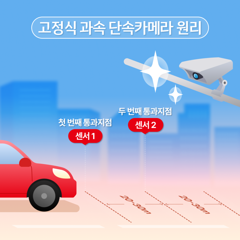 센서 2개 사이를 차량이 통과하는 시간으로 속도를 계산하고, 규정 속도를 초과하면 카메라가 촬영되는 방식이에요.